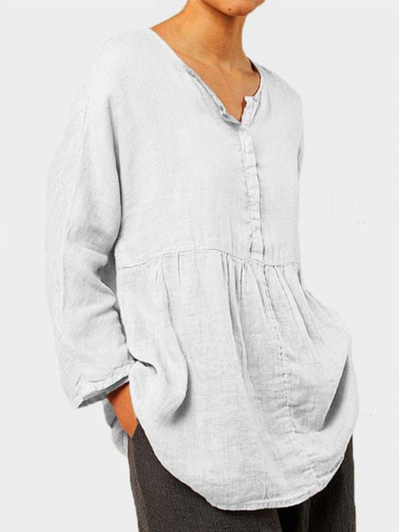 Casual V-Neck Solid Color Long-Sleeved Shirt