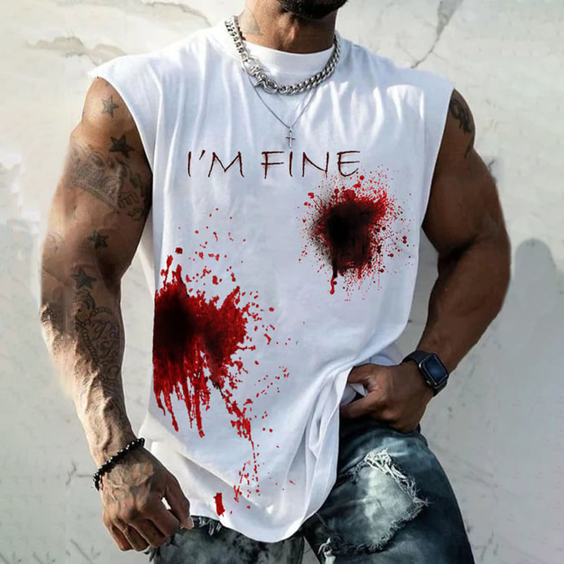 Men's Halloween I'm Fine Funny Round Neck Tank Top