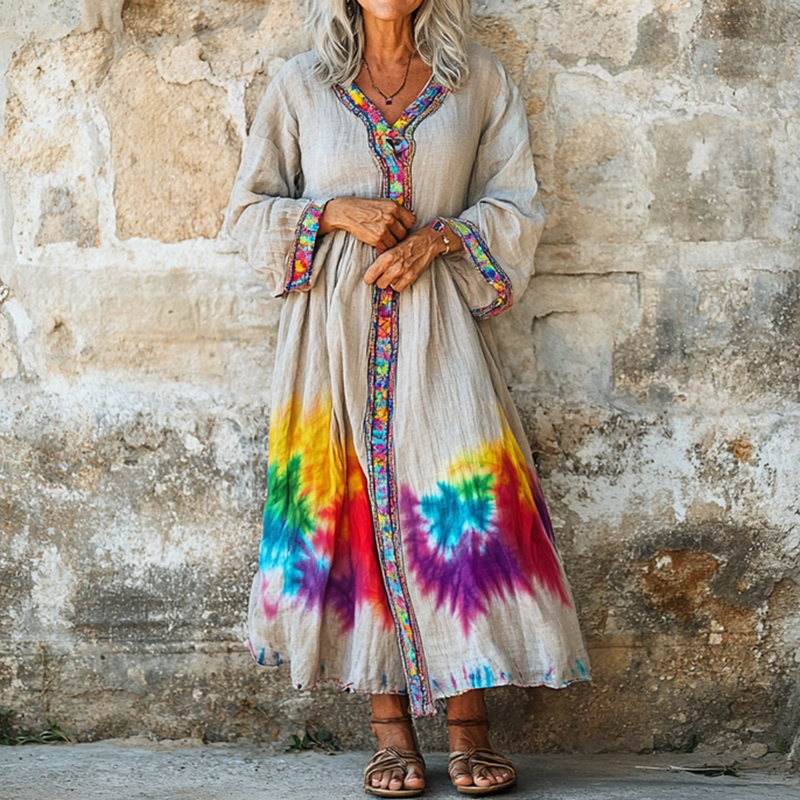 Women's Tie Dye Art Print V-neck Loose Midi Dress
